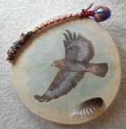 So genannte schamanische Reisen (ein Ritual im Medizinrad, unterstützt durch Rasseln und Spielen einer Rahmentrommel),