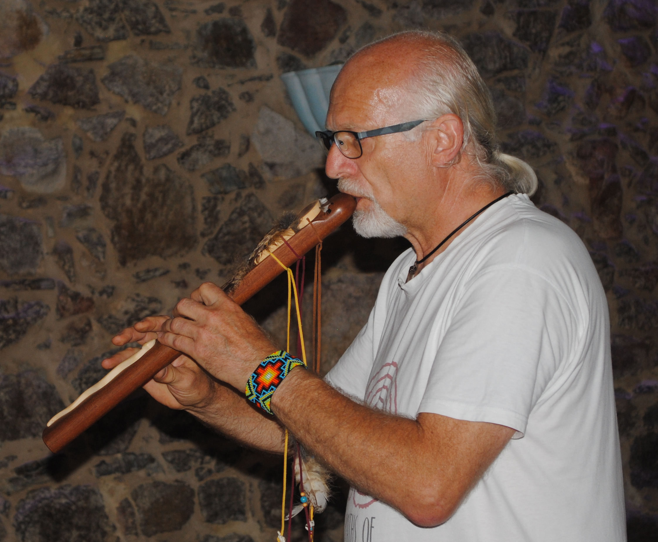 So genannte schamanische Reisen (ein Ritual im Medizinrad, unterstützt durch Rasseln und Spielen einer Rahmentrommel),